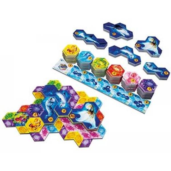 「アクア」では、プレイヤーは自分のサンゴ礁を育て同じ色のサンゴで構成された六角形の「生息地」を整えていきます。