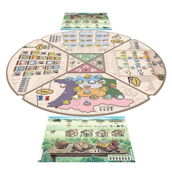 「チーズの作成」では、スペースにチーズトークンも配置して、分割ボードごとに異なる条件で勝利点を獲得します。