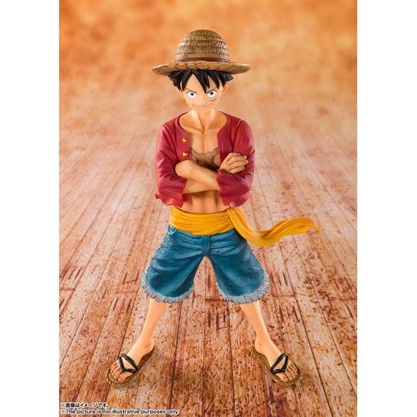 第一弾「麦わらのルフィ」は赤い長袖に、青色の半ズボン、黄色の腰巻を巻いた船長ルフィの、定番とも言える衣裳で登場!!
