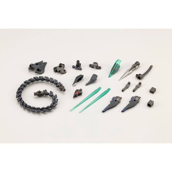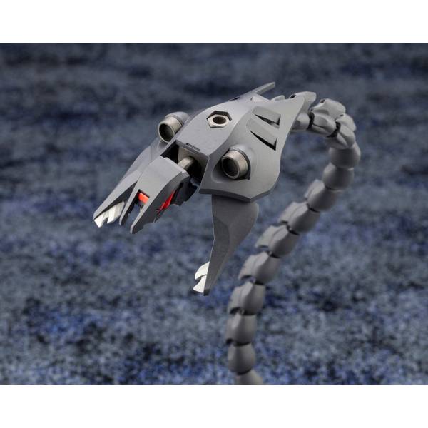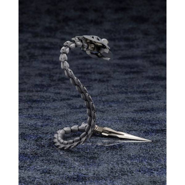 毒蛇を模したボディは25もの節をワイヤーで連結する構造によりフレキシブルな可動を実現!両端に備えたヘキサグラムや付属するヘキサギア用グリップパーツ等、単体としてはもちろん武器やカスタムパーツとしても魅力的なオルタナティブです!
