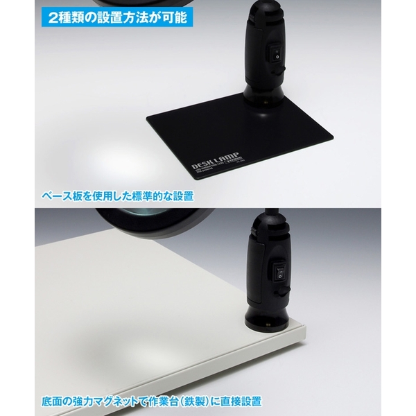・本体底面には強力マグネットを配し、付属のベース板や市販されている鉄製の作業台などに設置が可能となっております。