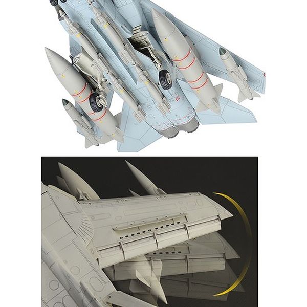 主翼の動きと連動して兵装パイロンの角度が常に正面を向く実機同様の動きも再現。