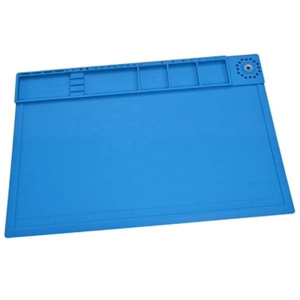 凄!ホビー用シリーズに新しく「シリコンマット」が仲間入り!小さく仕切られたスペースを活用し、部品分けや、プラモデル用接着剤を置くなど、きれいな作業台をキープ!優れた耐熱性、断熱性、耐腐食性を兼ね備えており、ハンダ付け作業にも最適!模型のみならず、電子工作にも役立つ商品となっております。