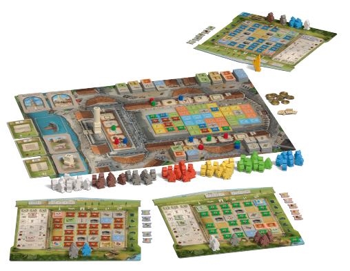 この『フォルム・トラヤヌム』で、各プレイヤーはコロニア(トラヤヌス帝自身が設立し、それゆえにローマ帝国全体で最も高い地位の都市)の1つを統治しています。