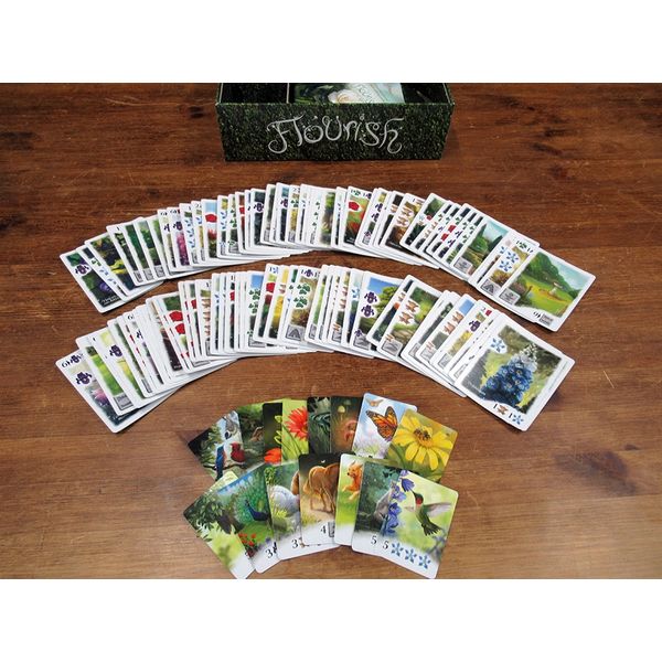 「フローリッシュ:咲き誇る花園」は対戦プレイも協力プレイも楽しめる、美しいアートワークや豪華な立体コンポーネントも素敵な、短時間で楽しめるカードドラフトとセットコレクションのゲームです。