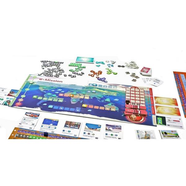 「Eミッション」で、各プレイヤーは欧州、米国、中国、第三世界のいずれかを担当し、協力して温暖化する地球に必要な驚くべき技術を開発し、回復力のある社会の構築を目指します。