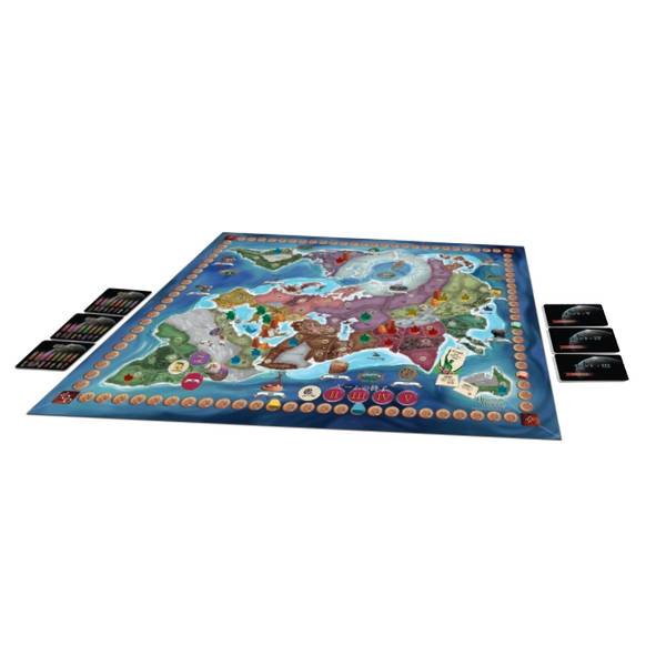 世界地図ゲームボード 1枚、プレイヤーボード 6枚、カード 80枚、木製駒 250個、厚紙製トークン 133枚、ダイス 6個、布袋、ルールブック