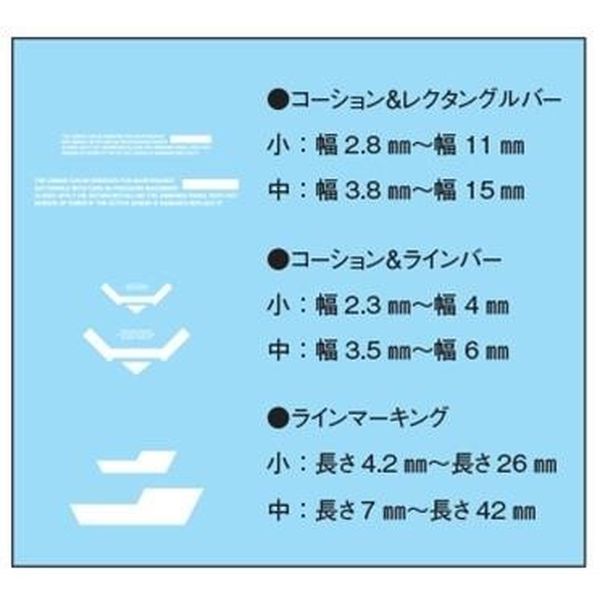 コーション&レクタングルバーやコーション&ラインバー、ラインマーキングなどの各種マーキングを小中2サイズでセットアイテム化しました。