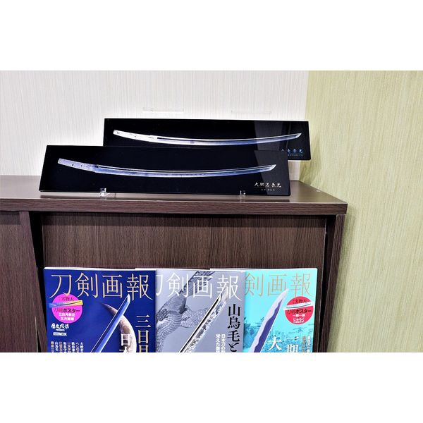 特殊加工技術の印刷により日本刀独特の美しい金属感を極限まで再現し、透明感のあるアクリルでコーティングしています。その姿はそこに本物があるかのような存在感を放ちます。サイズはコレクションや展示に適した実物の1/2スケールで再現しています。