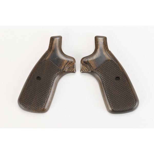 ・フィンガーチャンネルのないチェッカリング入り木製グリップ
