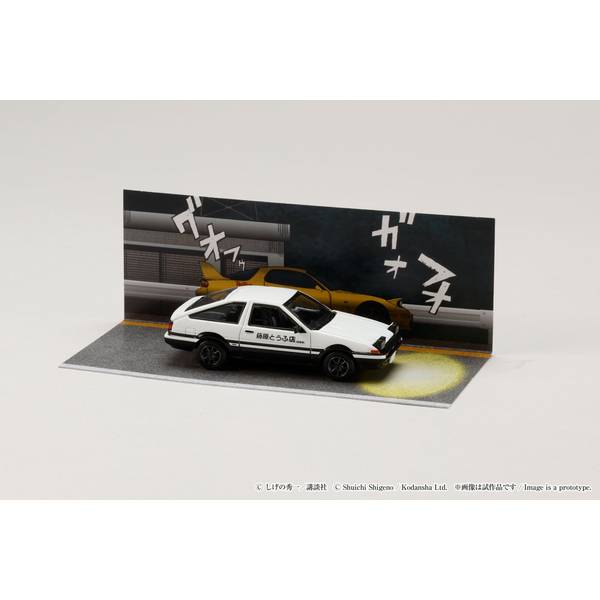頭文字D 30周年記念モデルとしてブリスターカード、コレクタブルBOX、劇中のシーンを再現するディオラマシートが付属します。