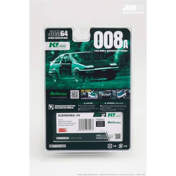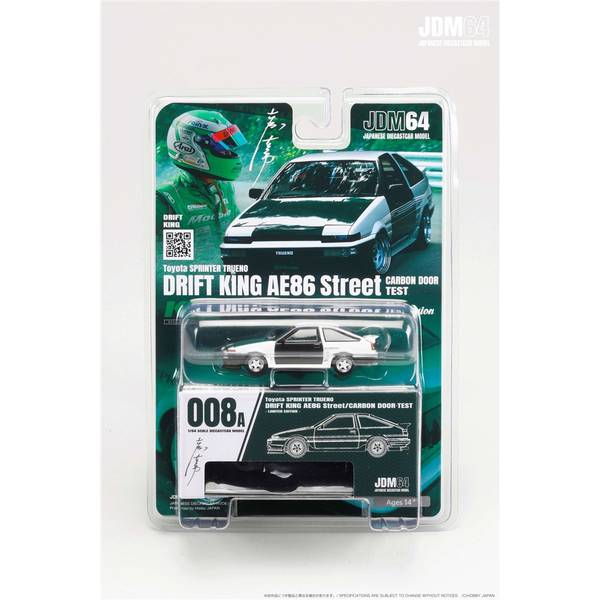 1/64ダイキャストシリーズ"JDM64"から トヨタ スプリンタートレノ DRIFT KING AE86 Street/CARBON DOOR・TESTの登場です。
