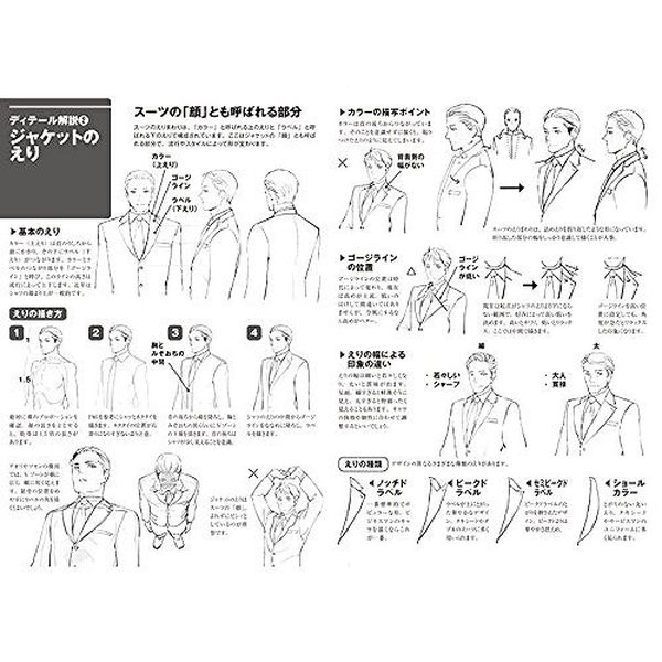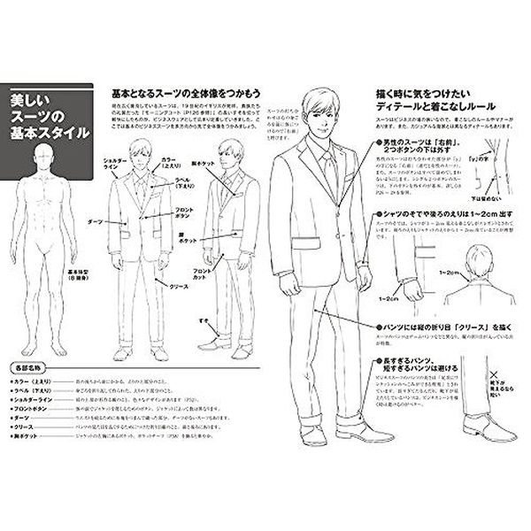 デザイン・着こなし・キャラにあわせたコーディネイトなどスーツを描くための基礎知識が満載!