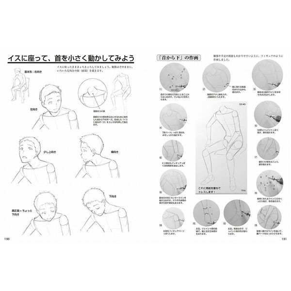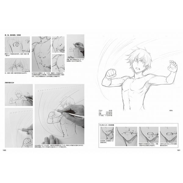 キャリア20年に及ぶ氏に、「現場ではどんな感じでラフ案を出すんですか?」など、無理な注文をお願いして、キャラデザイン、カラダを解説する作画、通常動作の「すわる」「歩く」などからアクションポーズまで、「絵のプロの作画の手順」を収めたのが本書です。
