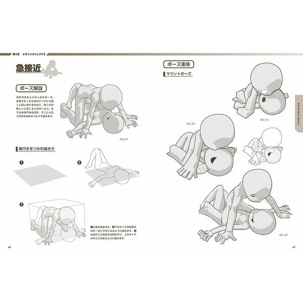 「デフォルメの恋愛シーンは密着した体が描きにくい!」という声に応え、親密な密着ポーズを描くコツや上手にデフォルメするコツなど、解説ページも充実しています。