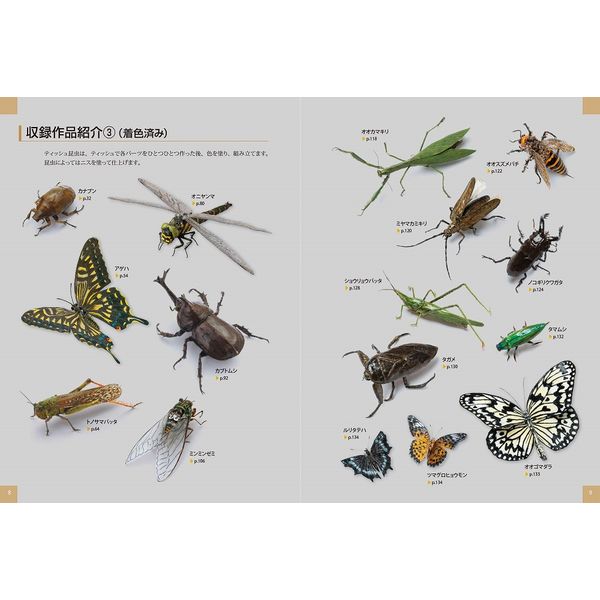●掲載作品一覧カブトムシ/アトラスオオカブト/ノコギリクワガタ/カナブン/タマムシ/ミンミンゼミ/オオカマキリ/ミヤマカミキリ/トノサマバッタ/ショウリョウバッタ/タガメ/オニヤンマ/オオスズメバチ/アゲハ/オオゴマダラ/ツマグロヒョウモン/ルリタテハ/アケビコノハ