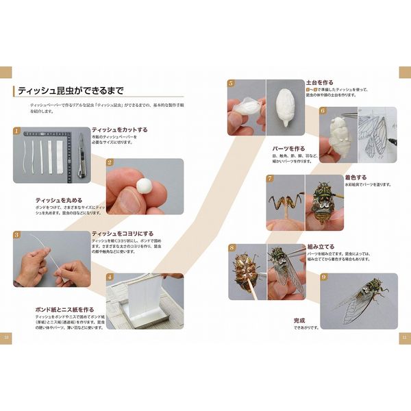 一枚のティッシュペーパーが多彩な昆虫たちに姿を変えていく、胸がワクワクするような「ティッシュ昆虫」の世界にようこそ!