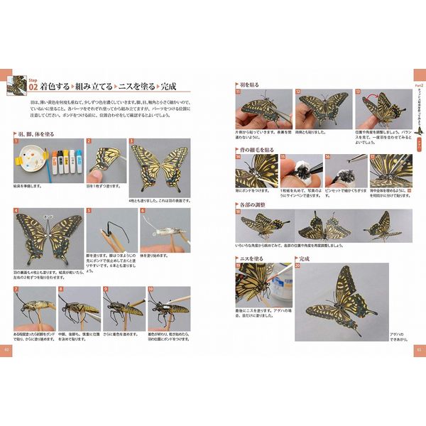 必要な道具から基本テクニック、具体的な制作過程までわかりやすく解説しているので、一度マスターすればさまざまな昆虫を作れるようになること間違いなし!夏休みの自由研究・工作にも、親子の趣味や話題作りにも。