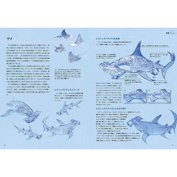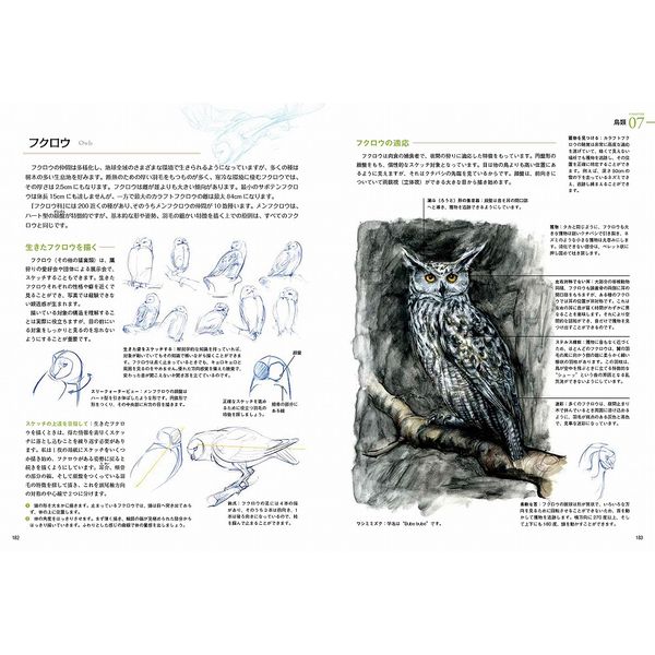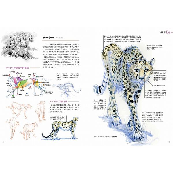 絵を描き始めたばかりの初心者にとっては、著者であるティムの作例は見ているだけでも参考になりますし、動物スケッチに慣れた方にとっても、生物学的な共通点、相違点などの図解は貴重な資料になることでしょう。