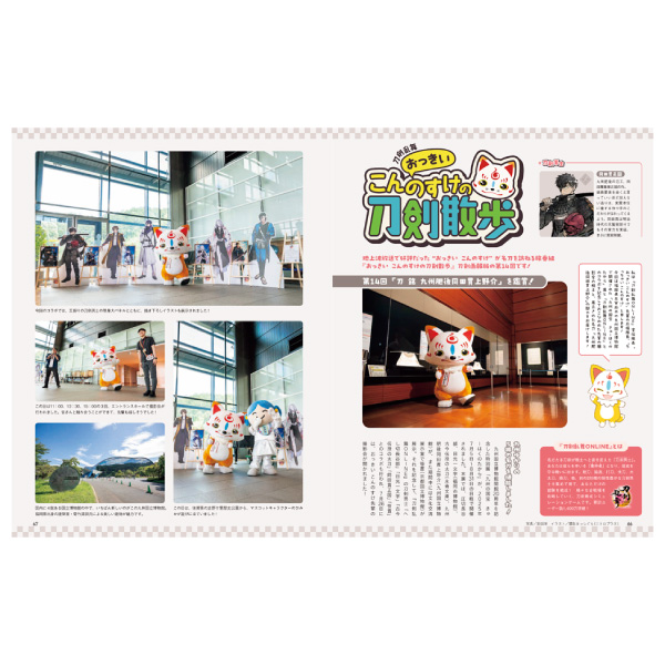 ▲第1特集の天下五剣特集では、それぞれの刀工達のゆかりの地についてのコラムを掲載。三条宗近ページでは東北から九州まで点在する宗近伝承の地を紹介しています。行くのが大変なスポットばかりなのでぜひ誌面でお楽しみください。