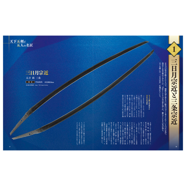 今回は、天下五剣-三日月宗近、童子切安綱、大典太光世、鬼丸国綱、数珠丸恒次-を紹介するだけにとどまらず、それぞれを作り上げた名工によるほかの刀剣や、それぞれの刀工にまつわる伝承の地についても取材し、紹介します。